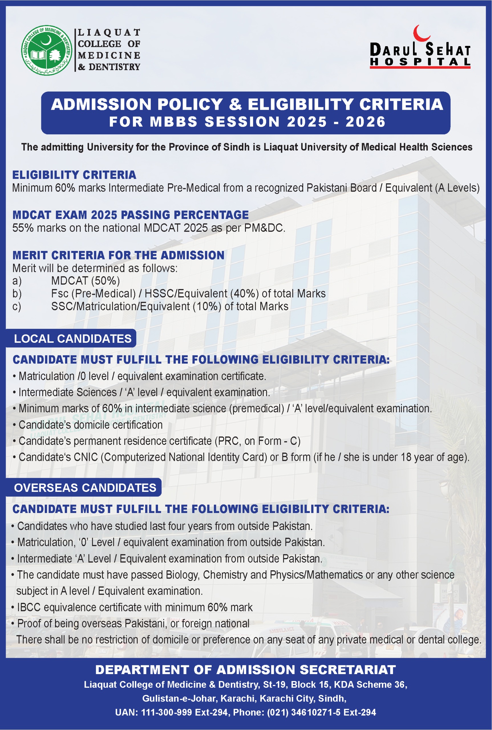 CONTACT: Admission secretariat LCMD UAN:111-300-999 ext 294